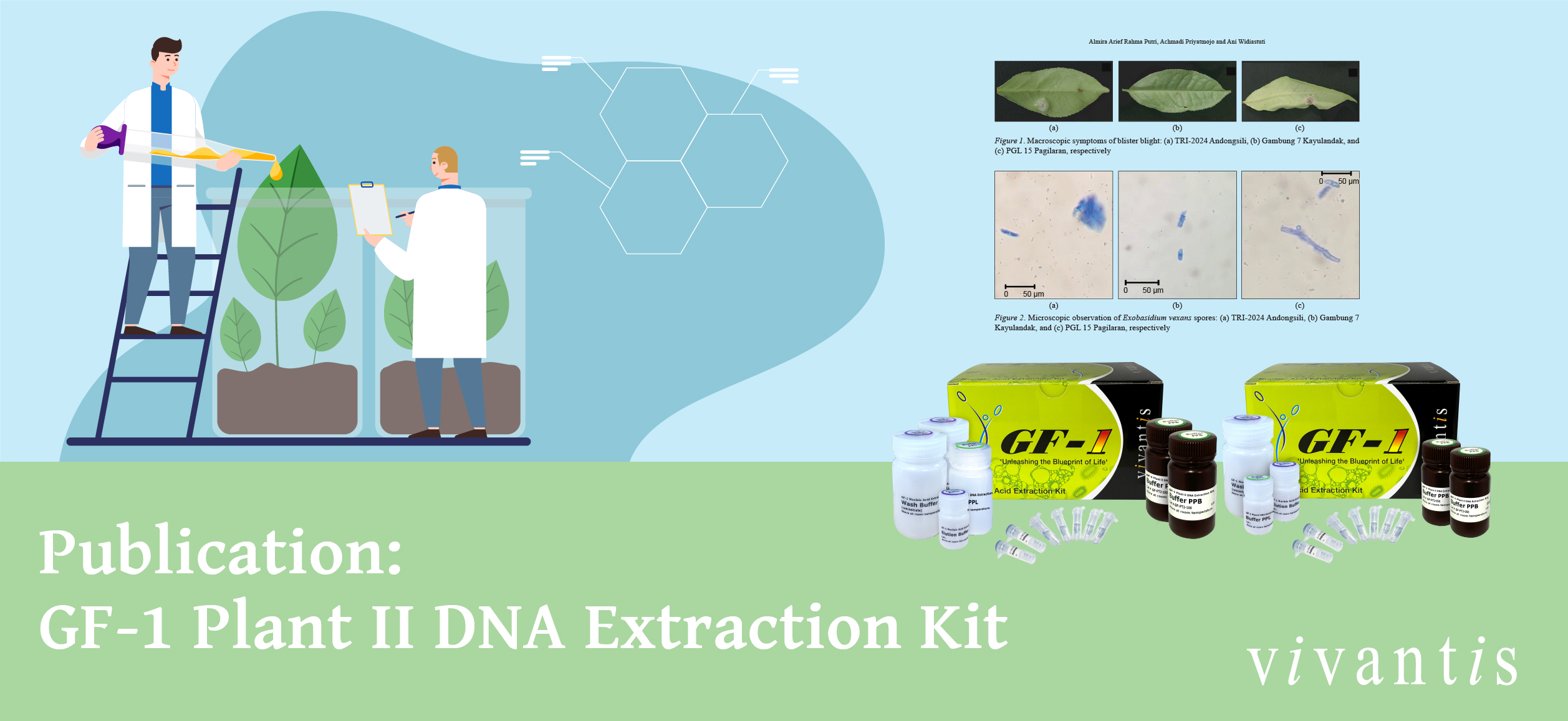 Reliable DNA Extraction for Challenging Plant Samples! The Vivantis GF-1 Plant II DNA Extraction Kit—designed for rapid and efficient purification of genomic DNA from plant samples with high polysaccharides and phenols—was successfully used in the study by Rahma Putri A.A et al. (2022) on the genetic diversity of Exobasidium vexans, the Causal Agent of Blister Blight on Tea in Pagilaran, Central Java, Indonesia Using PCR-RAPD. Pertanika J.Trop. Agric. Sci. 45 (3): 747 – 760 (2022)